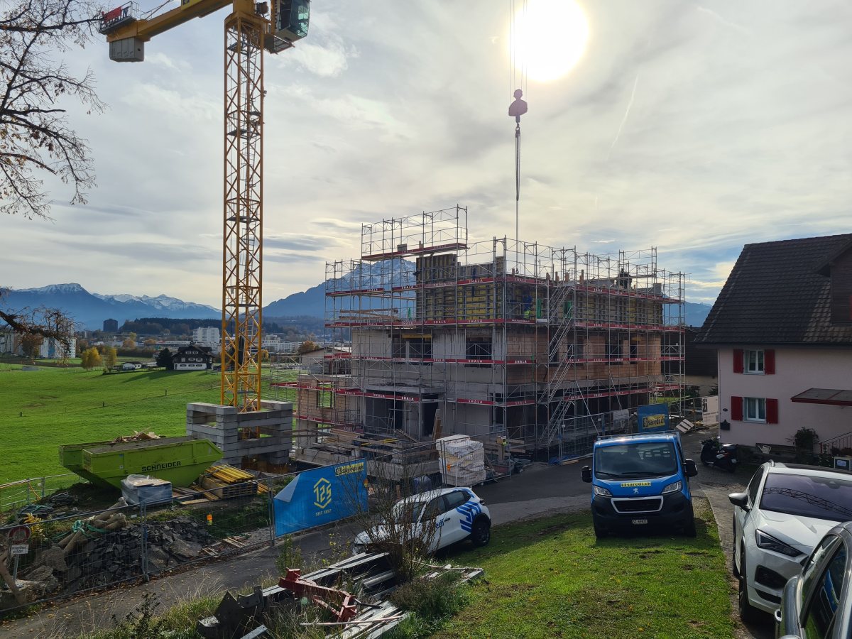 An der Rütistrasse 30 in Emmen entsteht ein Mehrfamilienhaus mit vier talseitig, nach Süden ausgerichteten Eigentumswohnungen. Die Wohnungen überzeugen mit vielen Fensterflächen und bieten lichtdurchflutete Räume mit herrlichem Ausblick in die Berge.