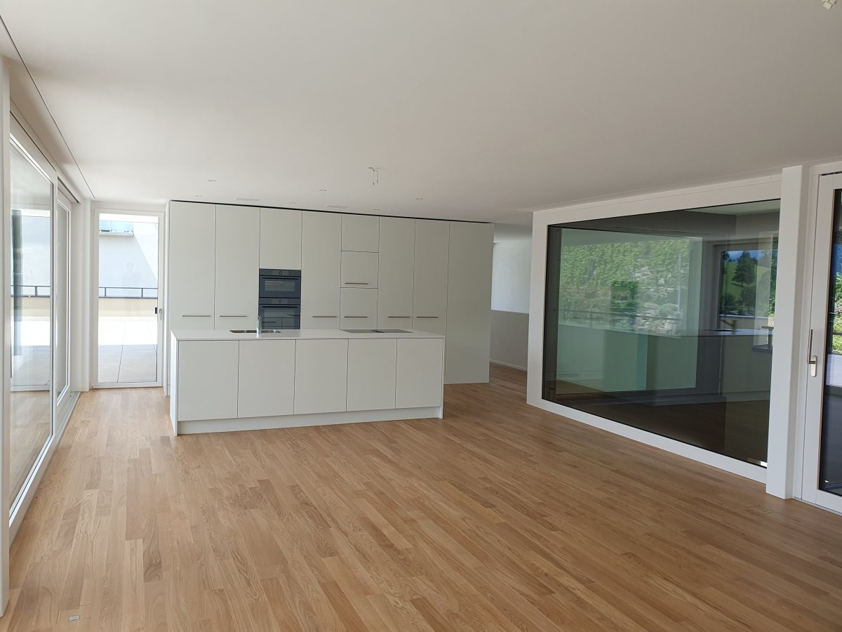 Dank einer geschickten Ausnutzung der Hanglage konnten vier neue Wohnungen in den neuen Baukörper intergriert werden und damit ein wichtiger Beitrag zur inneren Zonenverdichtung geleistet werden. Alle Wohnungen sind talseits ausgerichtet und profitieren von einer wunderbaren Aussicht auf den Pilatus.